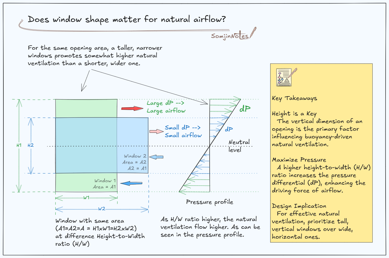 For the same opening area, a taller, narrower windows promotes somewhat higher natural ventilation than…