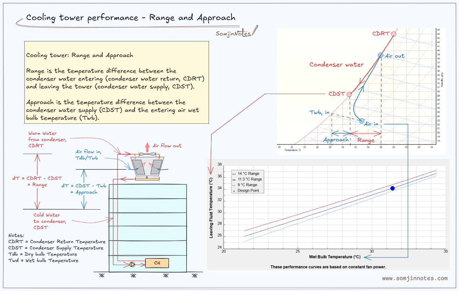 Cooling tower performance: Range and Approach Range is the temperature difference between the condenser water…