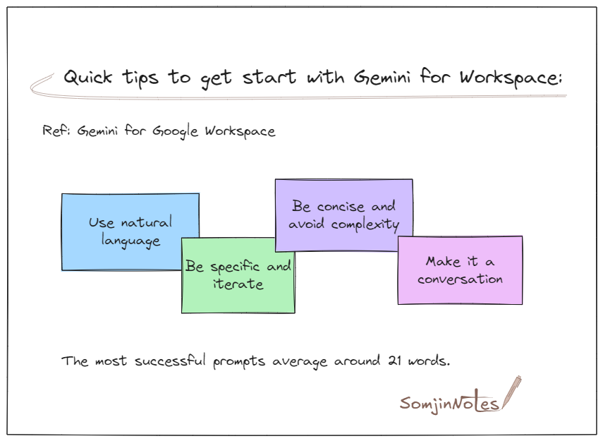 In order to get the expected outcome from generative AI, there are some guides suggested by Google as shown.